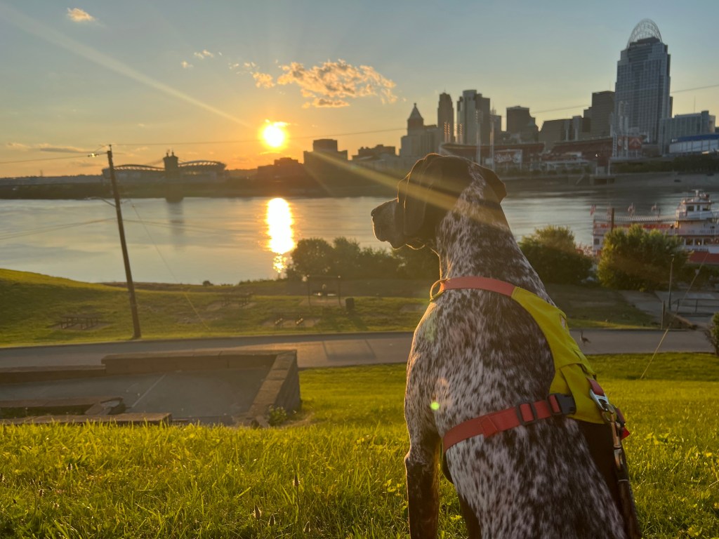 We did take some long walks and saw some cool things. The sunrise over the river and the sunset were neat. Mom was working so pretty uneventful.