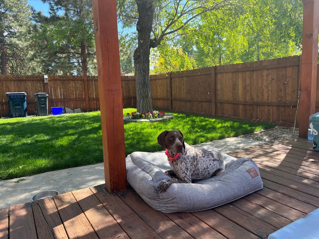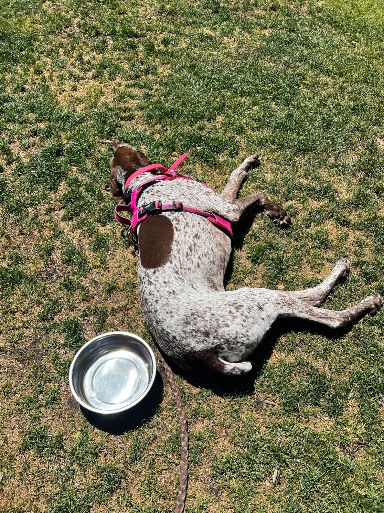 We arrived at our stay for the next 2 days. So excited to have a yard with grass and my humans are excited to do laundry. They made me take a bath today….